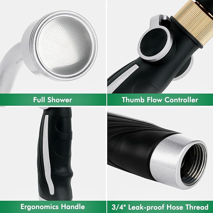 - 【Gentle & Even Water Flow】The aluminum shower head features 585 precision holes to mimic natural rainfall, delivering a soft, even flow that’s gentle on delicate plants, seedlings, and flowerbeds—perfect for thorough soaking without soil disruption.