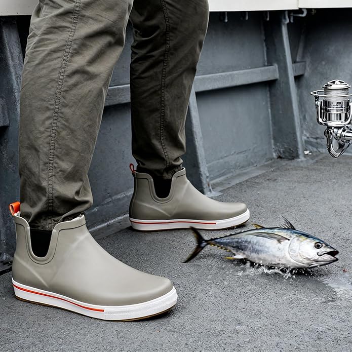WTW Womens Rain Boots Deck Boots for Men - Lightweight Waterproof Rubber Fishing Rain Shoes with High Traction for Gardening Camping
