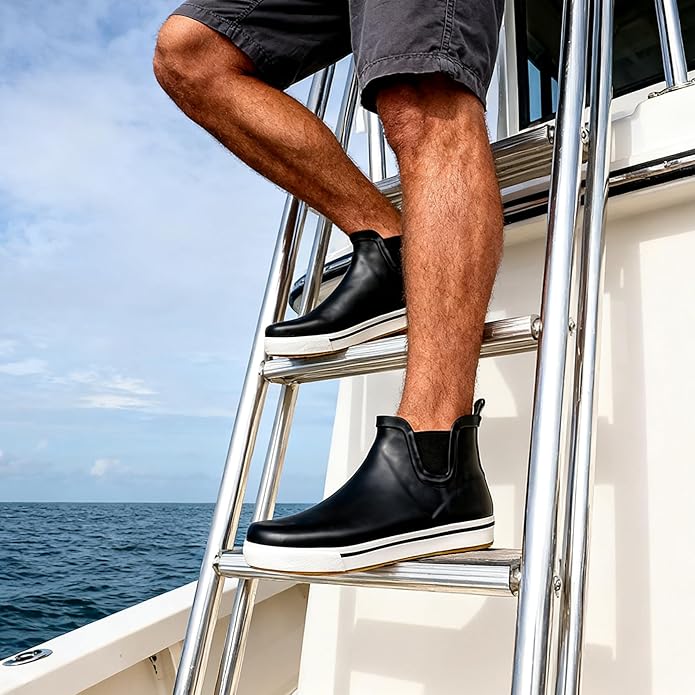 WTW Womens Rain Boots Deck Boots for Men - Lightweight Waterproof Rubber Fishing Rain Shoes with High Traction for Gardening Camping