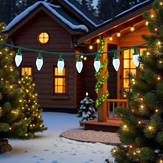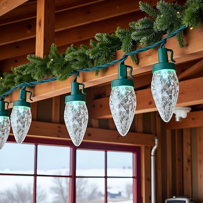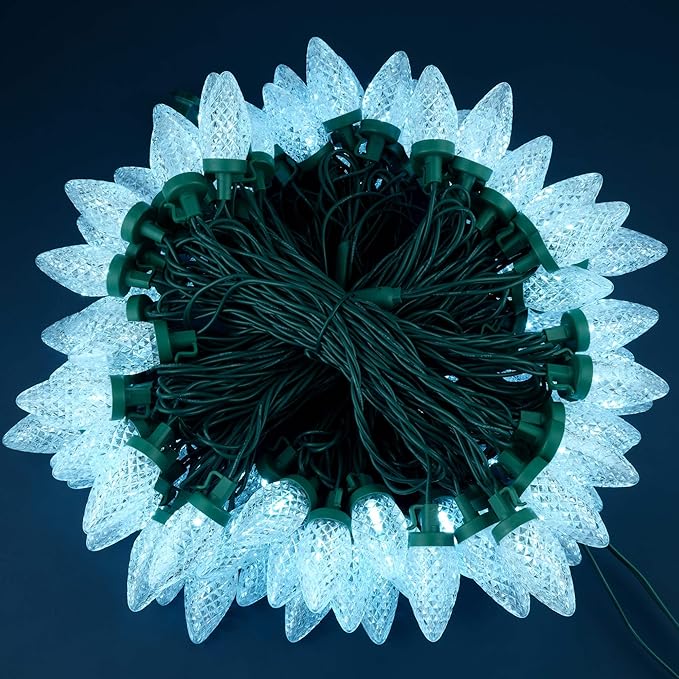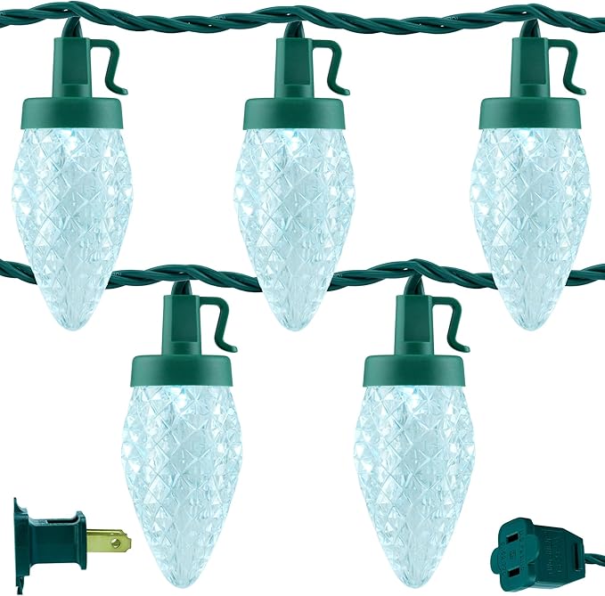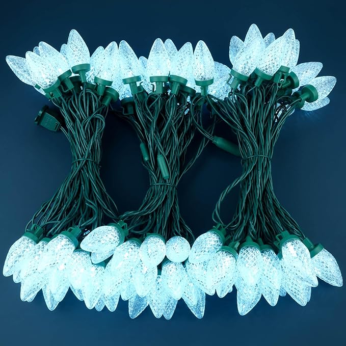 - Shatterproof ♥ The C9 multi-faceted refracting bulb is made of high-transparency acrylic to prevent cracking, breaking, flaking or fading. Each string lights has a rectifier with full-wave rectification for flicker-free performance and eye protection. The high-quality, bright C9 LED multi-faceted bulbs just like strawberries, beautiful and attractive.