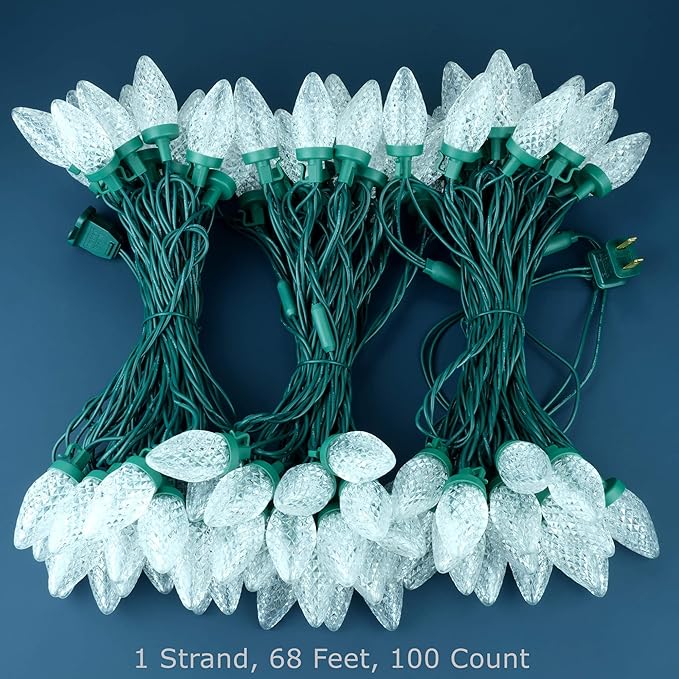 YULETIME Cool White C9 Strawberry LED Christmas Lights, 68 ft 100 Count 8" Spacing Waterproof Holiday String Light (Cool White - C9)