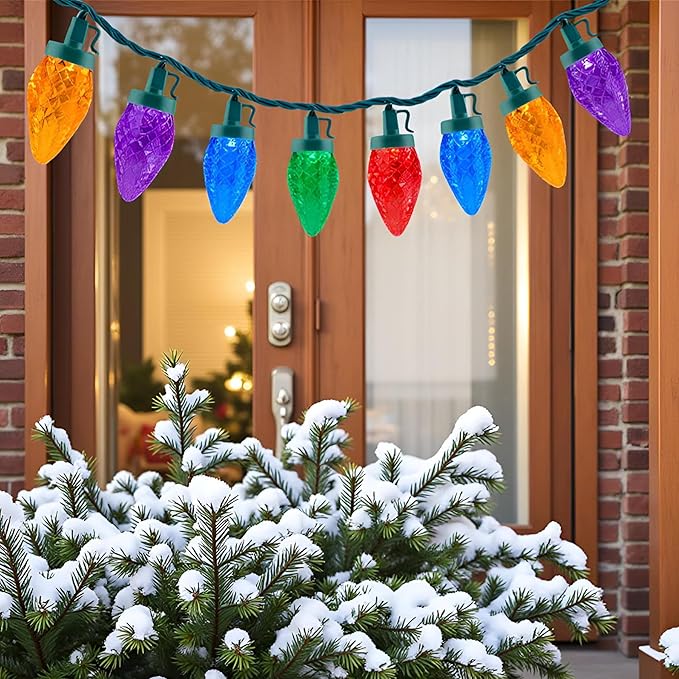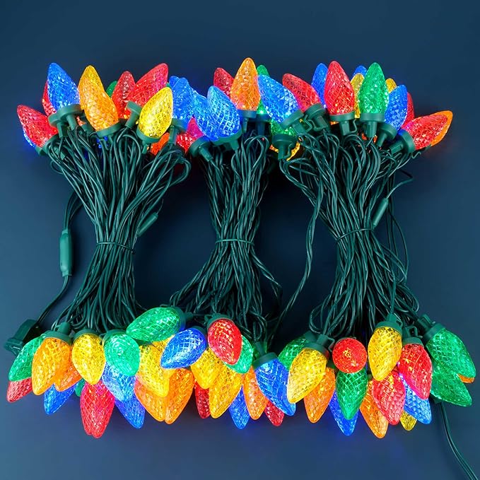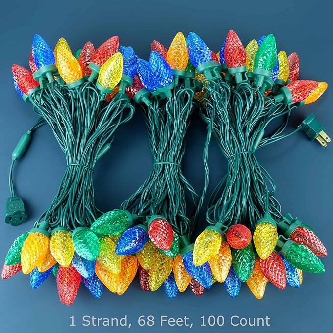 - Shatterproof ♥ The C9 multi-faceted refracting bulb is made of high-transparency acrylic to prevent cracking, breaking, flaking or fading. Each string lights has a rectifier with full-wave rectification for flicker-free performance and eye protection. The high-quality, bright C9 LED multi-faceted bulbs just like strawberries, beautiful and attractive.