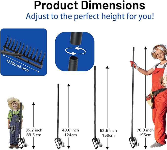- Adjustable Handle: The ergonomic handle adjusts from 35.2 inches to 76.8 inches, providing versatility for users of different heights and reducing strain during gardening activities.