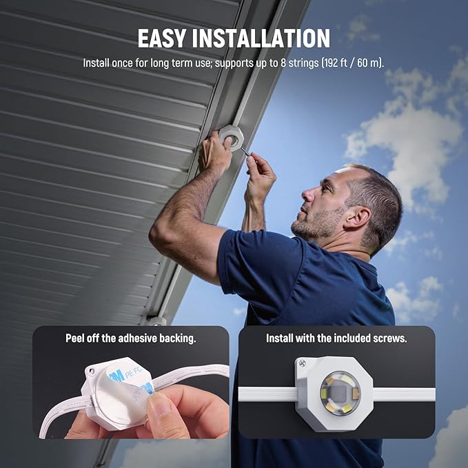 - 【AI Design & Creative DIY Effects】 Powered by the NEEWER Smart AI Lighting Engine, the outdoor eave lights allow AI generated lighting effects tailored to your preferences simply by sending commands via voice, text, or images. Also, the Creative DIY mode lets you fully customize the color of each LED, unleashing your creativity to create all kinds of amazing effects