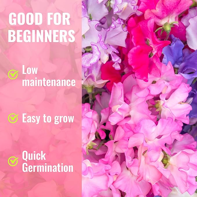 - 🌺Colorful Flower Cascade: 200 seeds to start your own garden! Fragrant sweet peas flower bloom with delicate, knee-high flowers. Their compact vines climb dreamily over trellises, fences, or pots, and their sweet fragrance instantly enlivens any space.