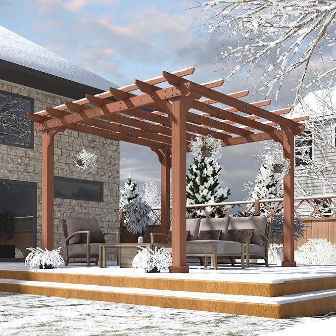 - Unparalleled Slatted Roof - The 10x10 FT pergola features an unparalleled slatted roof trellis design, which will add multi level and functional choices for your outdoor life and also add vertical space for plants, whether they spread on the structure or hang on the top or side. According to your needs, you can add an extra shading cover (not included in the pergola) to the roof, or hang some beautiful decorations etc. The outdoor pergola is an ideal choice for your garden or backyard etc