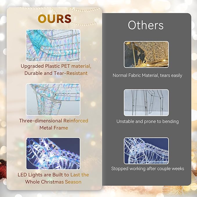 - ✨[Unique Iridescent Rattan Lighted Deer] Transform your outdoor space into a festive wonderland with our Lighted Christmas Reindeer Family Set! Featuring a Lifelike deer family silhoutte of glowing buck, doe, and fawn, this enchanting trio brings the magic of the season to your yard. Ideal for creating a warm, inviting atmosphere, these Christmas decorations will delight guests and neighbors alike.
