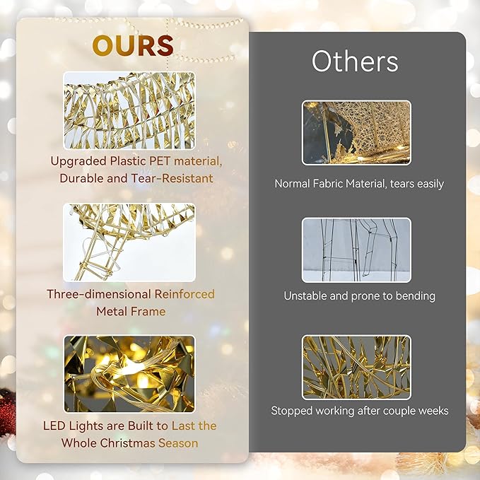 - 🦌 WHIMSICAL GOLD CHRISTMAS DEER DECOR: Transform your outdoor space into a festive wonderland with our pre-lit Christmas reindeer family set! Featuring a lifelike deer family silhouette, adorned with a pretty red bow, this enchanting trio brings the magic of the season to your yard. Ideal for creating a warm, inviting atmosphere, these Christmas decorations will delight guests and neighbors alike.