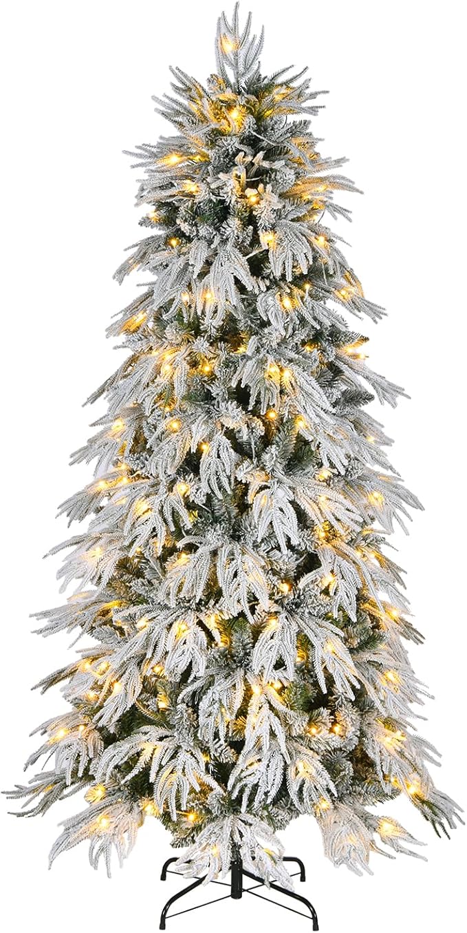 - [Enhanced Stability] Our skinny flocked Christmas tree comes equipped with a reinforced metal stand, providing greater stability for your holiday decorations. You can display this Christmas tree with lights confidently, knowing it's built to last through the festive season.