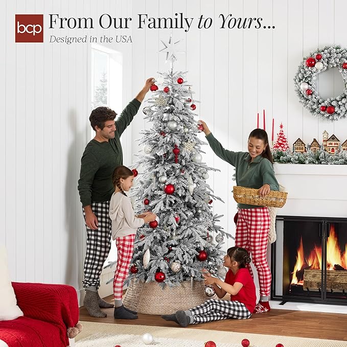 - FLOCKED ARTIFICIAL NOBLE FIR: Bring the beauty of a winter wonderland indoors with snow-touched, realistic-style branches that bring a touch of luxury to your holiday decor; Number of tips (4.5ft/6ft/7.5ft/9ft/12ft): 750/1,350/2,136/3,088/5,748