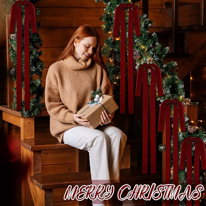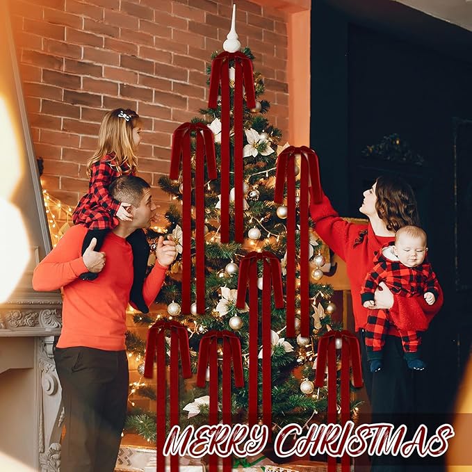- Wide Applications: you can decorate your Christmas tree for adding a festive atmosphere; Also can tie the Christmas Velvet bow to your front door, stairs, mantles, wall, window, fences, fireplace, even gift box, and more; Suitable for many occasions, such as Christmas parties, holiday parties, and other theme parties