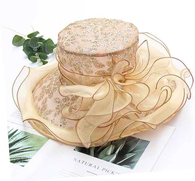 Toyvian Khaki Bloomy Sun Hat with Wide Brim for Women Lightweight Floppy Beach and Garden Hat Comfortable Summer Sun Protection for Vacation Hiking and Outdoor Parties